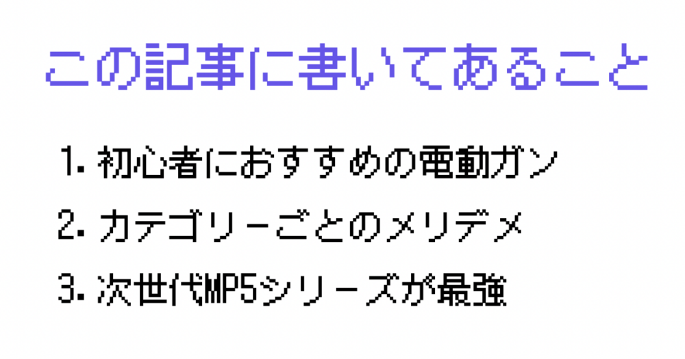 今回紹介する電装ガンの中から最初の一挺を選んでおけば、絶対に失敗することはないと断言できる自信があります。